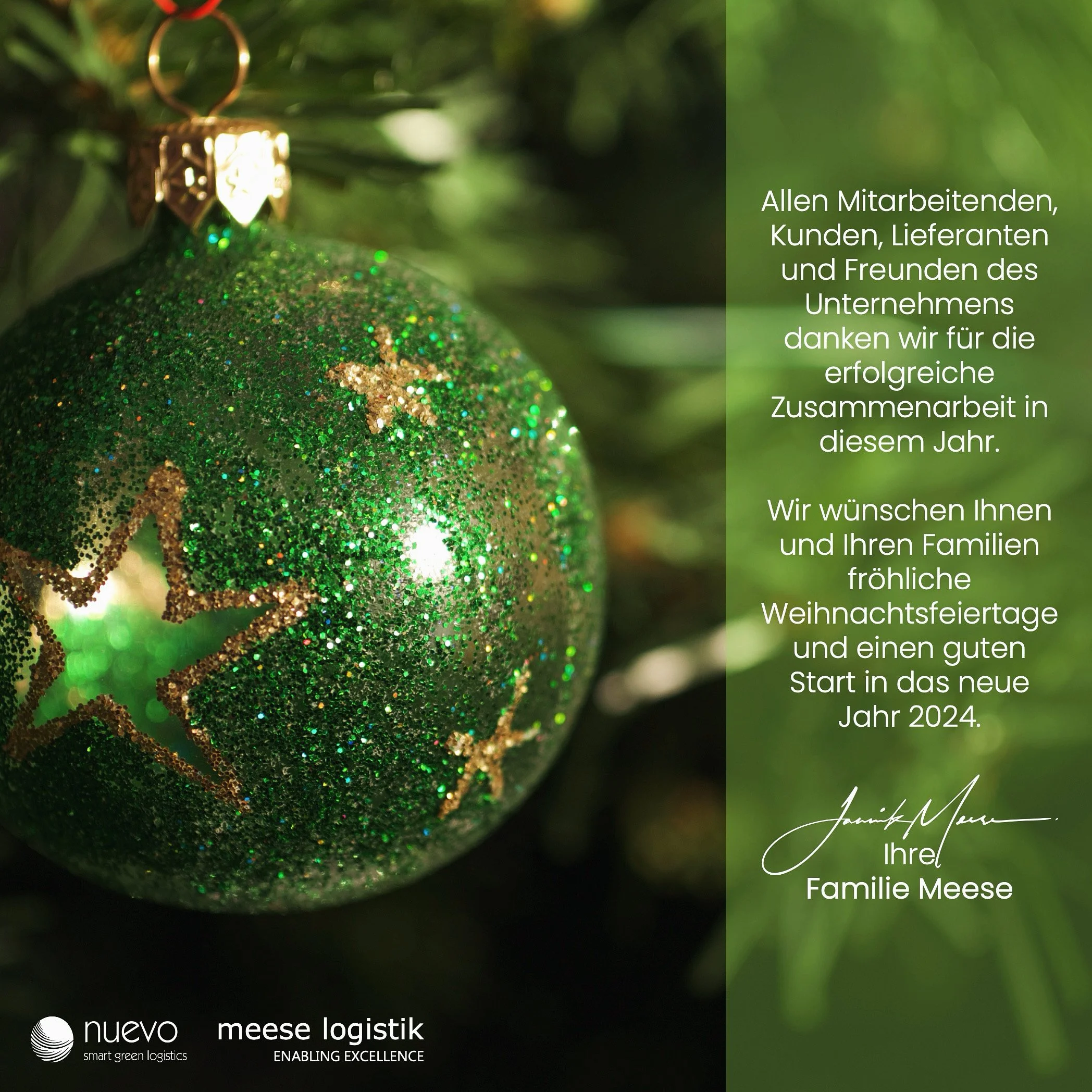 Wir wünschen Ihnen und Ihren Familien fröhliche Weihnachtsfeiertage und einen guten Start in das neue Jahr 2024.